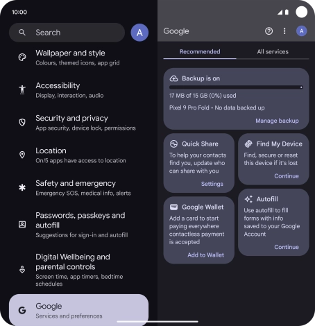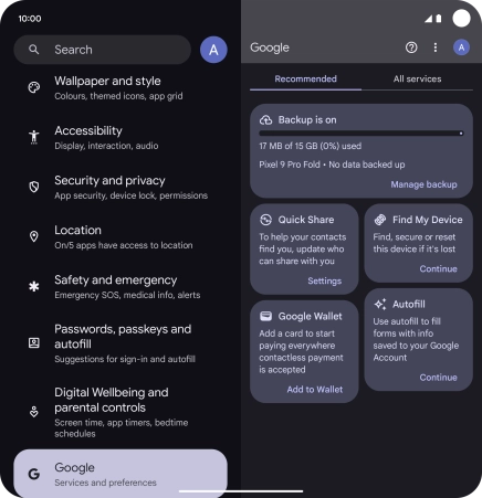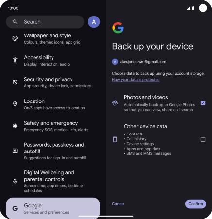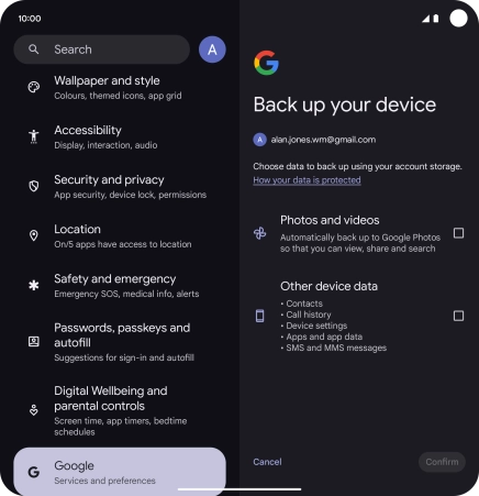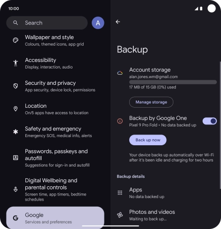 Press the indicator next to "Backup by Google One" to turn the function on or off.