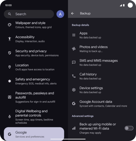 Press the indicator next to "Back up using mobile or metered Wi-Fi data" to turn the function on or off.