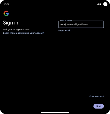 If you don't have a Google account, press Create account and follow the instructions on the screen to create an account.