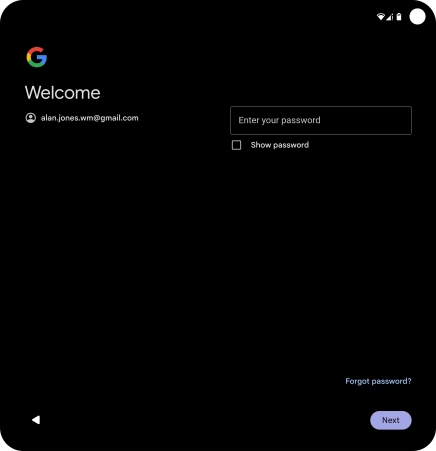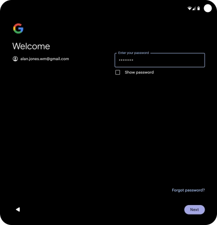 Press the field below "Enter your password" and key in the password for your Google account.