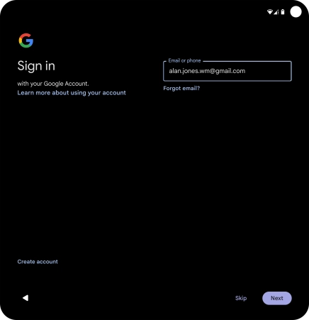 Press Email or phone and key in the username for your Google account.