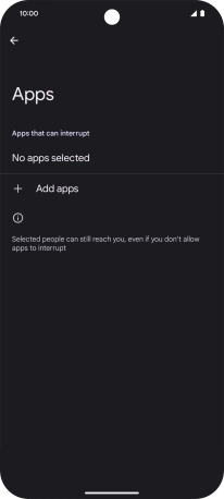 Press Add apps and follow the instructions on the screen to select which apps you would like to receive notifications from when Do Not Disturb is turned on.