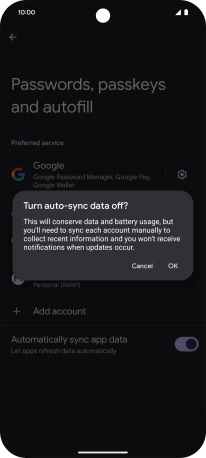 Press the indicator next to "Automatically sync app data" to turn the function on or off.