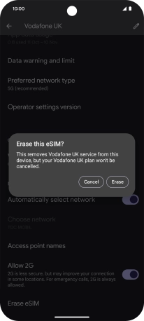 Press Erase and follow the instructions on the screen to delete your eSIM.