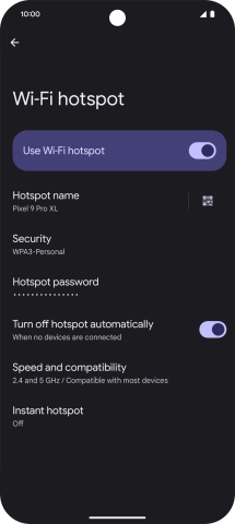 Press the indicator next to "Use Wi-Fi hotspot" to turn on the function.
