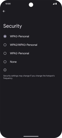 Press WPA3-Personal to password protect your Wi-Fi hotspot.
