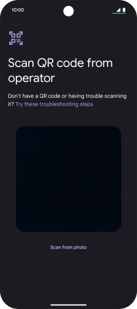Place the QR code you've received inside the phone camera frame to scan the code. If you’ve deleted your eSIM, you can re-add it using your existing QR code. If you’re having problems, see our FAQ.