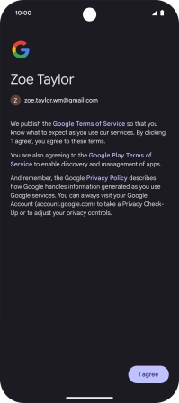 Press I agree and follow the instructions on the screen to select settings for your Google account.