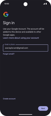 If you don't have a Google account, press Create account and follow the instructions on the screen to create an account.