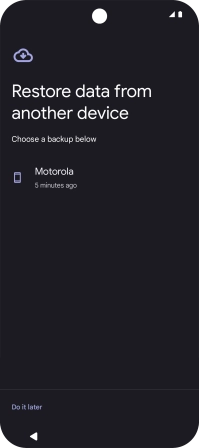 When this screen is displayed, your phone is ready to restore content from a Google One backup.