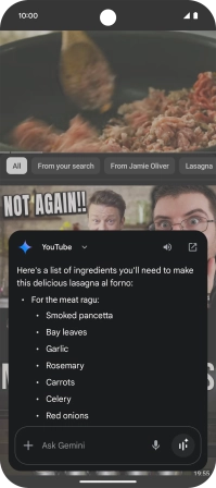Using Gemini, you can ask questions about the content of a YouTube video.