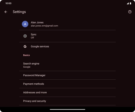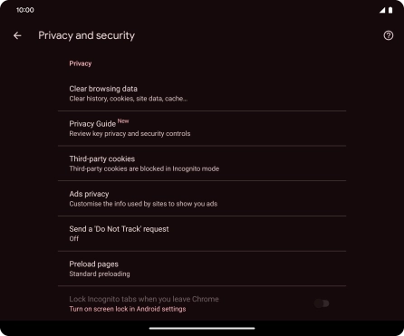 Press Privacy and security.