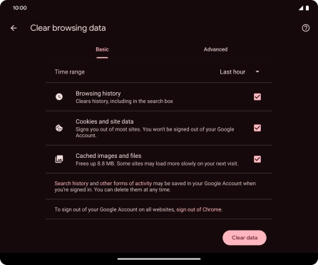 Press Clear browsing data.