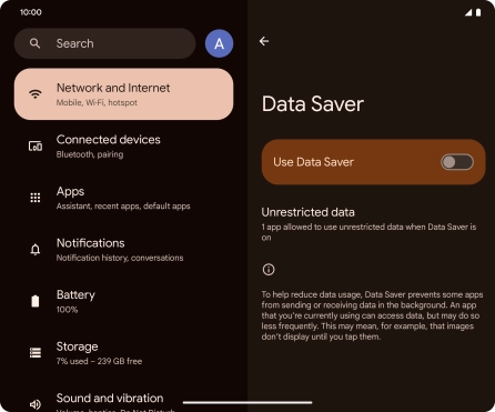 Press the indicator next to "Use Data Saver" to turn the function on or off.