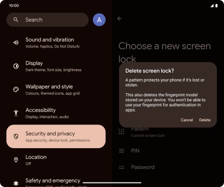 Turn use of phone lock code on your Google Pixel Fold Android 14 on or off