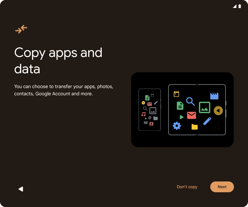 Press Copy and follow the instructions on the screen to transfer the content from the other phone and finish the activation of your phone.