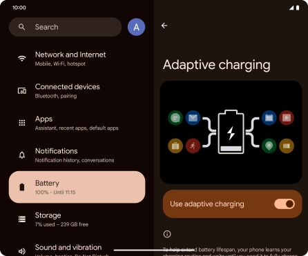 Press the indicator next to "Use adaptive charging" to turn the function on or off.