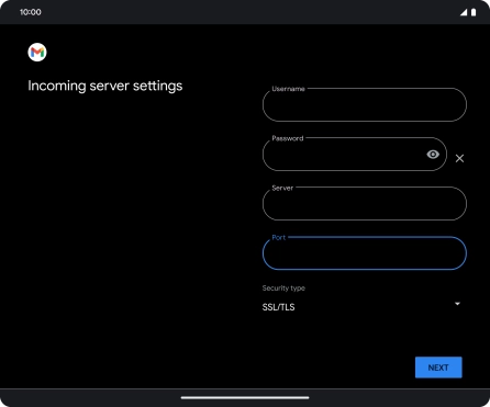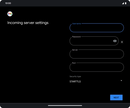 Press the field below "Server" and key in the name of your email provider's incoming server.