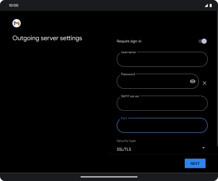 Press the field below "Password" and key in the password for your email provider's outgoing server.