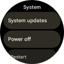 Press System updates. If a new software version is available, it's displayed. Follow the instructions on the screen to update the smartwatch software.