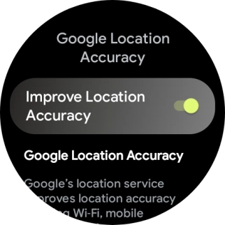 If you press the indicator next to "Improve Location Accuracy" to turn off the function, your smartwatch can find your exact position using the GPS satellites but it may take longer as there is no access to supplementary information from the mobile network or nearby Wi-Fi networks.