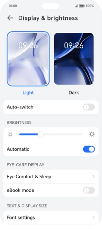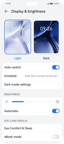 If you select Custom time, follow the instructions on the screen to select the required period of time for dark mode.