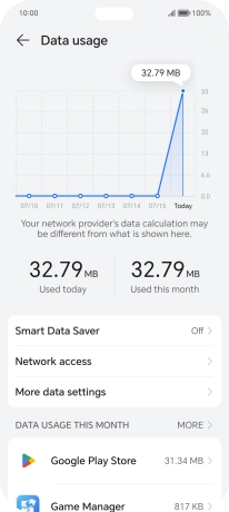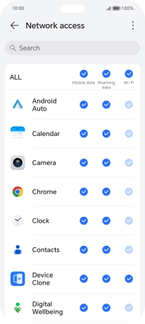 Press the field next to the application name in the "Mobile data" column to turn the function on or off.