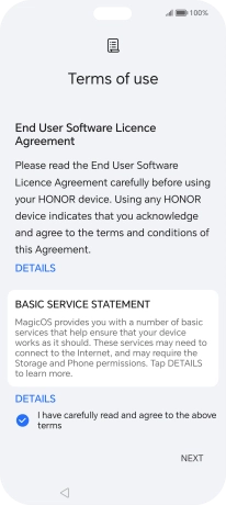 Press the field to accept the licence agreement.