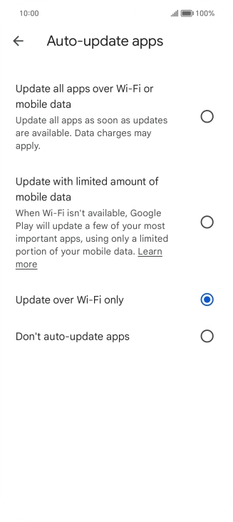 If you turn on automatic update of apps via mobile network, your apps are automatically updated via the mobile network when no Wi-Fi networks are within range.