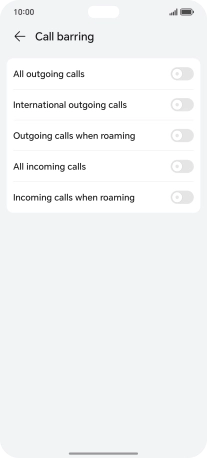 Press the indicator next to the required barring type to turn the function on or off.