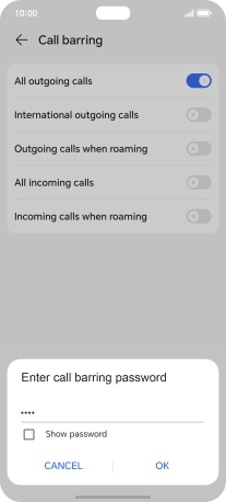 2. Turn call barring on or off