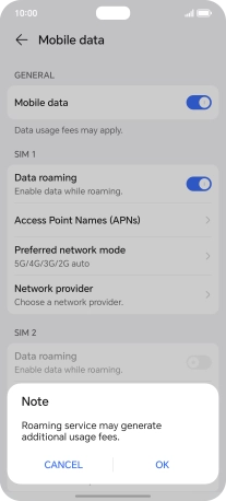 Press the indicator next to "Data roaming" to turn the function on or off.