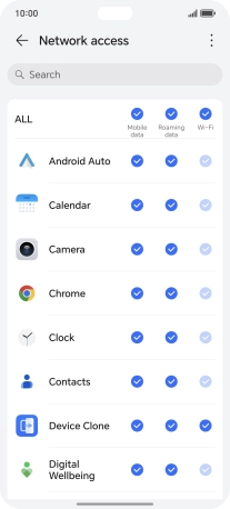 Press the field in the "Mobile data" column next to the required app to turn the function on or off.