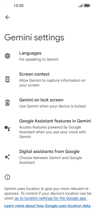 Press Google Assistant features in Gemini and follow the instructions on the screen to turn use of Google Assistant functions on or off.