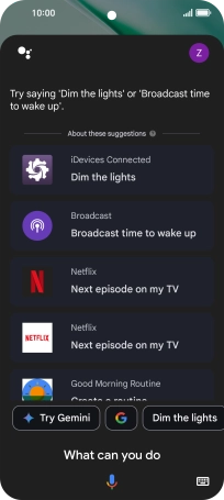 Say "What can you do?" to see more examples of voice control commands from Gemini.