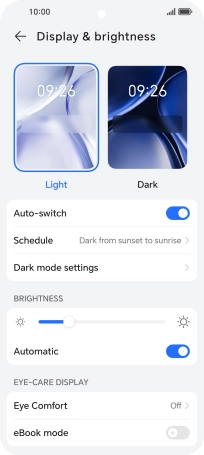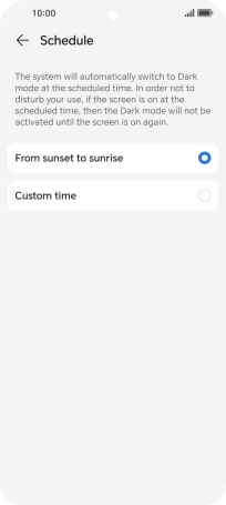 If you select Custom time, follow the instructions on the screen to select the required period of time for dark mode.