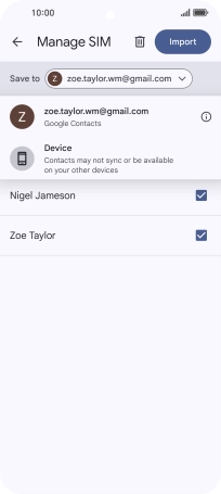 You can import your contacts from your SIM to your Google account. This way, you won't lose your contacts if you change your SIM. To import your contacts from your SIM to your Google account, you need to activate your Google account on your phone.