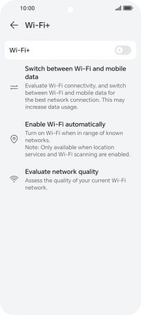 Press the indicator next to "Wi-Fi+" to turn the function on or off.