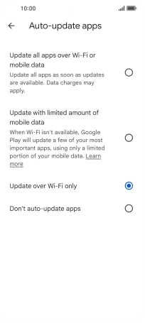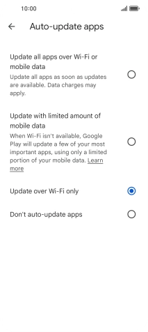 If you turn on limited update of apps via mobile network, your most used apps are automatically updated via the mobile network when no Wi-Fi networks are within range.
