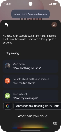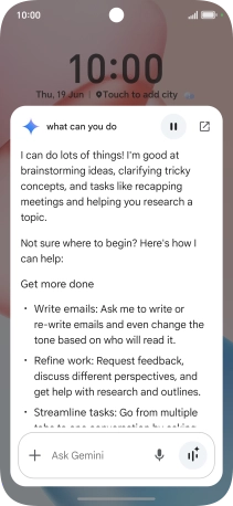 Say "What can you do?" to see more examples of voice control commands from Gemini.