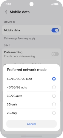 Press Mobile data.