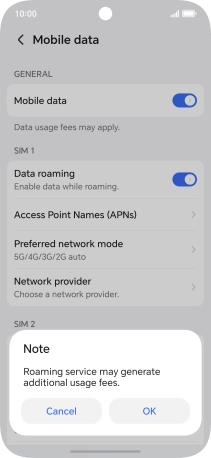 Press the indicator next to "Data roaming" to turn the function on or off.