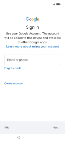 Press Email or phone and key in the username for your Google account.