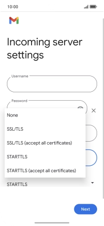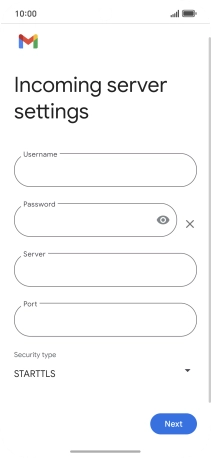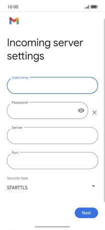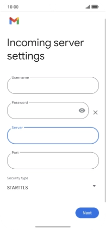 Press the field below "Server" and key in the name of your email provider's incoming server.