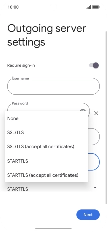 Press the field below "Username" and key in the username for your email the email provider's outgoing server.