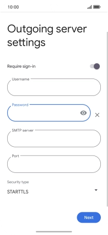 Press the field below "Password" and key in the password for your email provider's outgoing server.