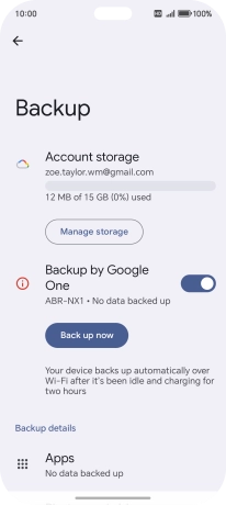 Press the indicator next to "Backup by Google One" to turn on the function.
