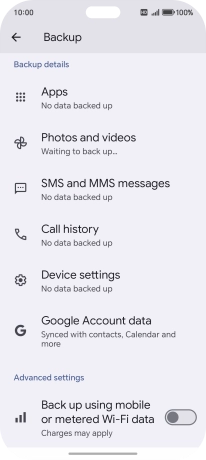 Press the indicator next to "Back up using mobile or metered Wi-Fi data" to turn the function on or off.