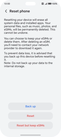 Press Reset. Wait a moment while the factory default settings are restored. Follow the instructions on the screen to set up your phone and prepare it for use.