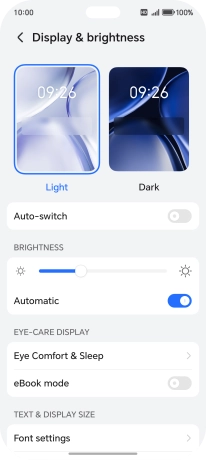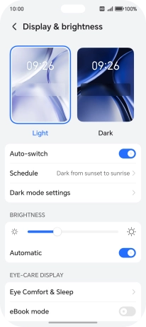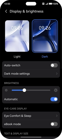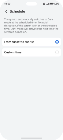 If you select Custom time, follow the instructions on the screen to select the required period of time for dark mode.
